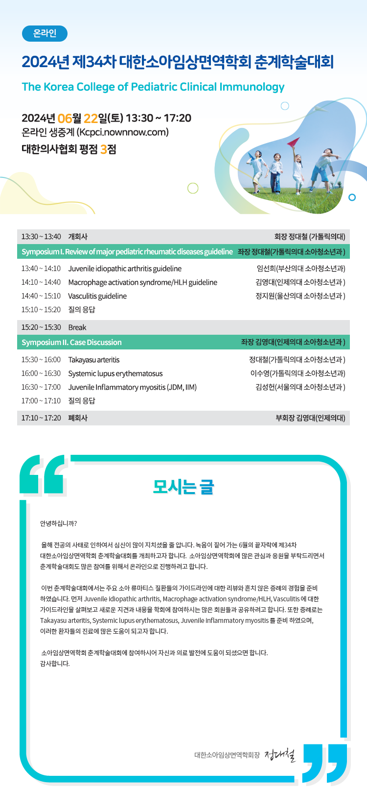 2024년 제34차 대한소아임상면역학회 춘계학술대회